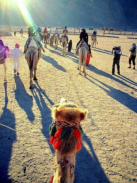 坐上了駱駝,在撒哈拉沙漠裡前行,漫延天際的沙丘,時刻幻化的景色,千年來魅惑著多少往來的旅人與商隊,沉寂的寧靜只聽得到趕腳駱駝的行走聲。