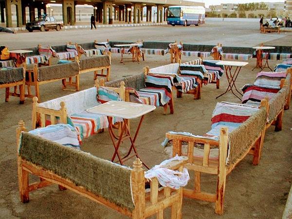 我悠悠地喝杯阿拉伯咖啡,戶外的咖啡座椅突顯異國風情。