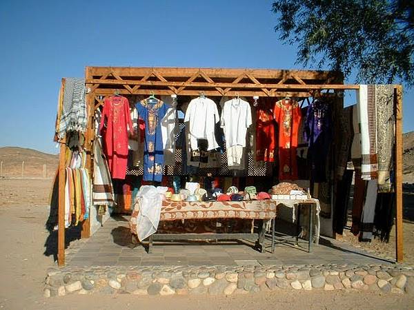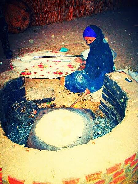 休憩區旁販賣當地服飾及首飾的小攤販,烤餅的婦人耐著酷暑與爐火為旅人們煮食。