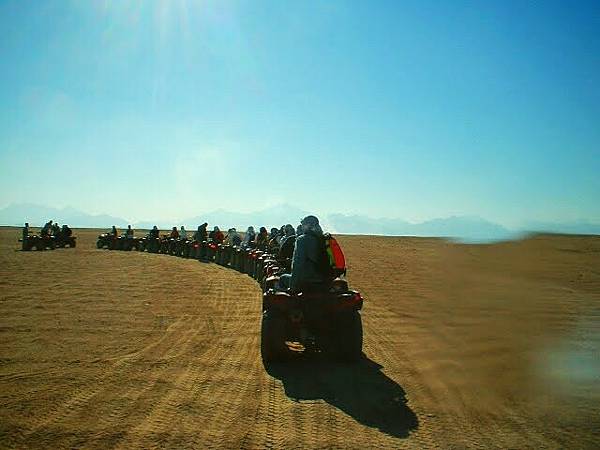 換乘著ATV由沙漠往海岸走去,令我驚嘆的是這不到十分鐘的路程,景象却由壯闊無垠的黃沙轉換為蔚藍的海岸,大自然所展現的奇蹟在撒哈拉裡一覽無遺。
