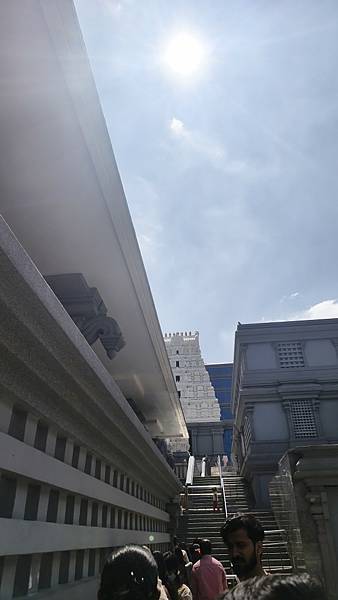 順著博伽梵歌的引導, 進入寺廟佛像參拜,一路播放博伽梵歌,並有 108 格,每一段落走一格,排隊的人潮便隨著誦文的歌聲前進,營造出莊嚴肅穆的氛圍。