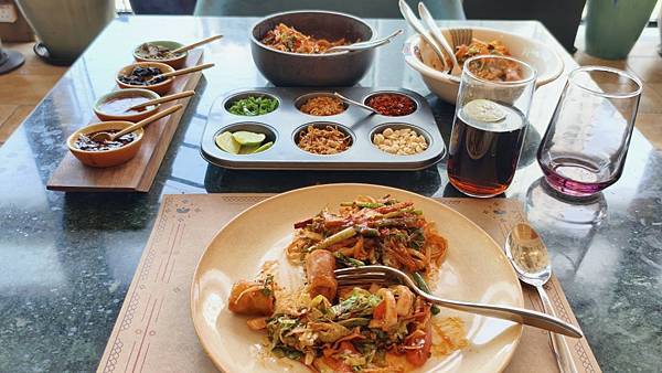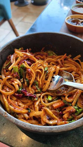 雖然它是緬甸菜餐廳,甚至是一家連鎖店,但它的美味依然令人難以抗拒。 我點了招牌的「辣炒街頭麵」,端上桌時還熱騰騰地盛放在石鍋裡!麵條裹著滿滿的蔬菜和豆腐,每一口都是味覺的爆炸。 春捲也很特別,是越南春捲的辣味版本,內餡飽滿蔬菜,外皮酥脆可口。