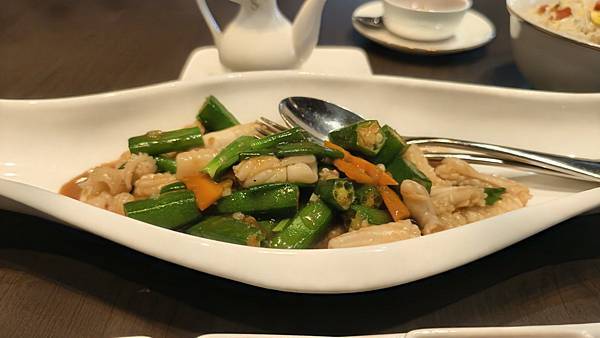 香宮的菜色向來以精緻美味著稱。粒粒分明的揚州炒飯、肉質鮮嫩的烤鴨、清爽可口的秋葵花枝,每一道都是主廚的精心之作。