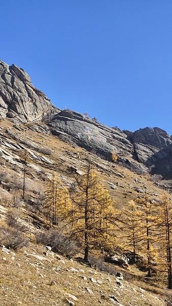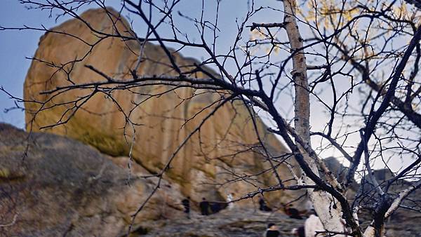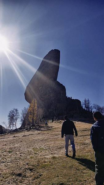 我撫摸著岩石上的裂痕,這些都是冰河時期留下的地質印記。攀爬時發現岩壁上的古老岩畫——螺旋紋代表太陽,蹄印象徵牲畜繁衍,這些都是匈奴時期遊牧民族的精神圖騰。