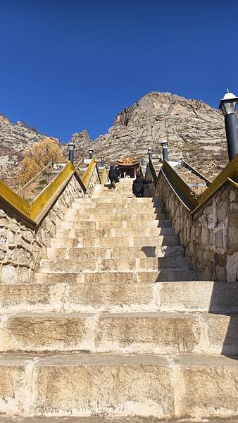 「這108階的設計,其實借鑑了西藏桑耶寺的建築智慧。」導遊說。每階高度略異,據考是依《時輪密續》中呼吸節奏設計。攀登時,我特意在第96階停留——從這個高度回望,來路曲折卻充滿韻律,彷彿在訴說「將滿未滿」的人生智慧。