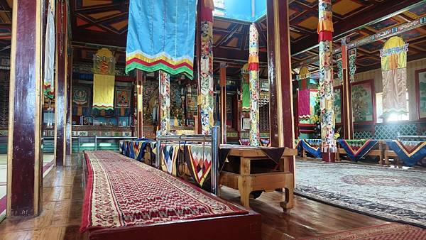 在柱廊環繞的轉經道,我數著木柱上的古老紋飾:蓮花象徵純淨,金剛杵代表智慧,雲紋則是蒙古人對長生天的敬畏。這些14世紀從元大都傳入的圖騰,至今仍在訴說著歷史。