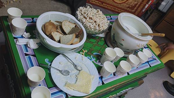 當我品嘗奶豆腐時,導遊補充:「這製作工藝在《飲膳正要》中有詳細記載,是元代宮廷的重要食材。」接著,我勇敢嘗試了發酵馬奶(Airag)——這被稱為「元玉漿」的傳統飲品。导游说酸澀過後,喉間将泛起淡淡的溫潤,但对我而言,真的太酸了。導遊解釋:「蒙古人相信,馬奶酒經過96小時的發酵,才能達到最佳風味。」桌上還有奶皮子(烏如木),那層凝脂的香醇,與麵包簡直是天作之合。